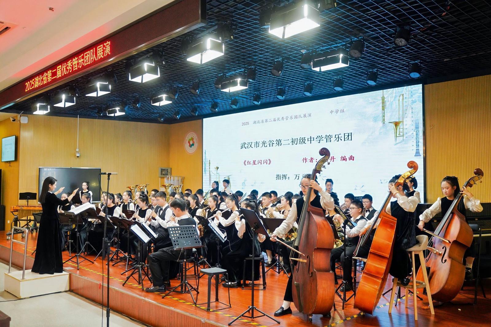 11月16日,湖北省第二届优秀管乐展演落幕,成立仅14个月的武汉市光谷第二初级中学(下文简称“光谷二初”)813班管乐团获得“示范乐团”称号,指挥万洋老师获评“优秀指挥”。