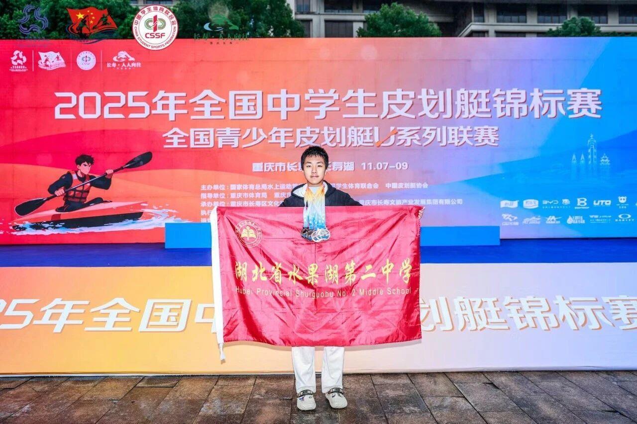 近日,全国中学生皮划艇锦标赛落下帷幕,湖北省武昌水果湖第二中学七年级(5)班学生谢岩喆凭借稳定发挥和顽强拼搏,在专业组200米、500米及1000米项目中,共斩获3枚银牌、2枚铜牌。