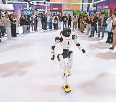观众在观看机器人表演。