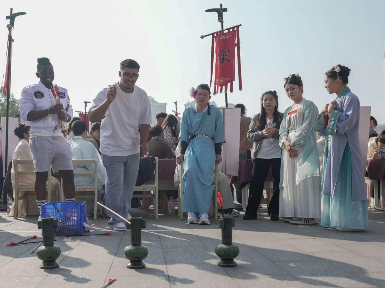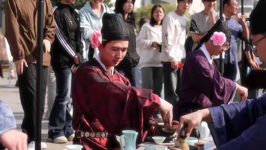 茶香氤氲,词韵悠扬。11月13日,以“风雅宋韵 梦回汴京”为主题的校园民俗文化节在武汉轻工大学拉开帷幕。师生们身着雅致宋服,体验投壶簪花之乐,品味七汤点茶之妙,在沉浸式的互动中完成了一场与历史的对话。