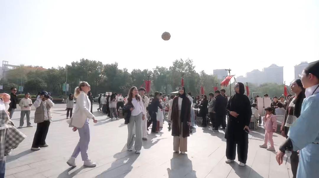 放眼整个活动现场,处处皆是生动的风景:画着宋代“珍珠妆”的女生与簪花的男生们在湖边踢起蹴鞠;投壶区内,不时传来箭矢入壶的欢呼;文墨雅集区里,有人静心抄录词笺,也有人登台慷慨朗诵《满江红》。而精心设置的“多元一体:宋代的民族交融与文化共享”主题展,则通过榷场互市等历史图文,悄然揭示着中华文明兼容并蓄的宏大格局。