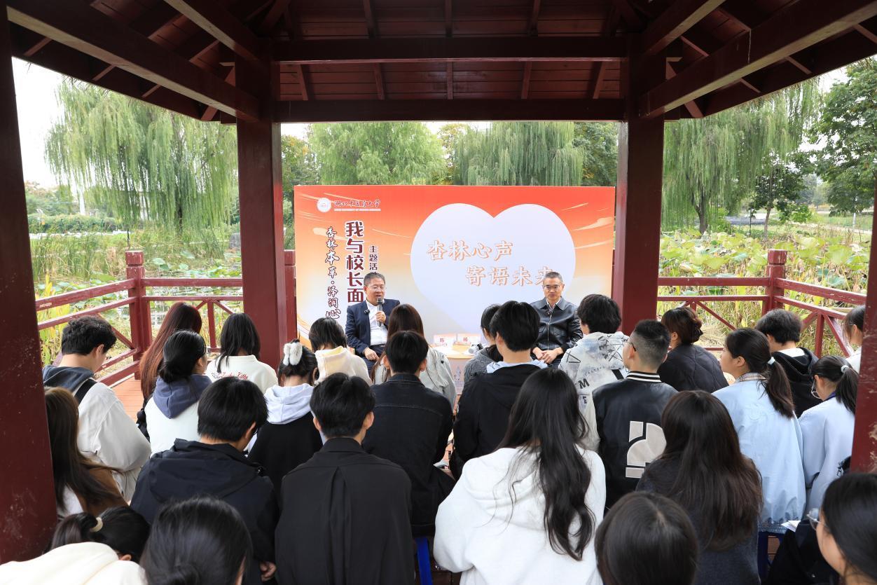 舒缓的音乐在药草的芬芳中流淌,师生们一同凝神静气,练习“六字诀”呼吸吐纳……11月12日的湖北中医药大学黄家湖校区药用植物园,变身成为一个开放式的“心灵课堂”。这是该校第六期“我与书记、校长面对面”活动现场,校长陈刚带领学生同游药用植物园,面对面进行深入交流,引导学生探寻中医理论中“药食同源”“身心合一”的健康智慧。