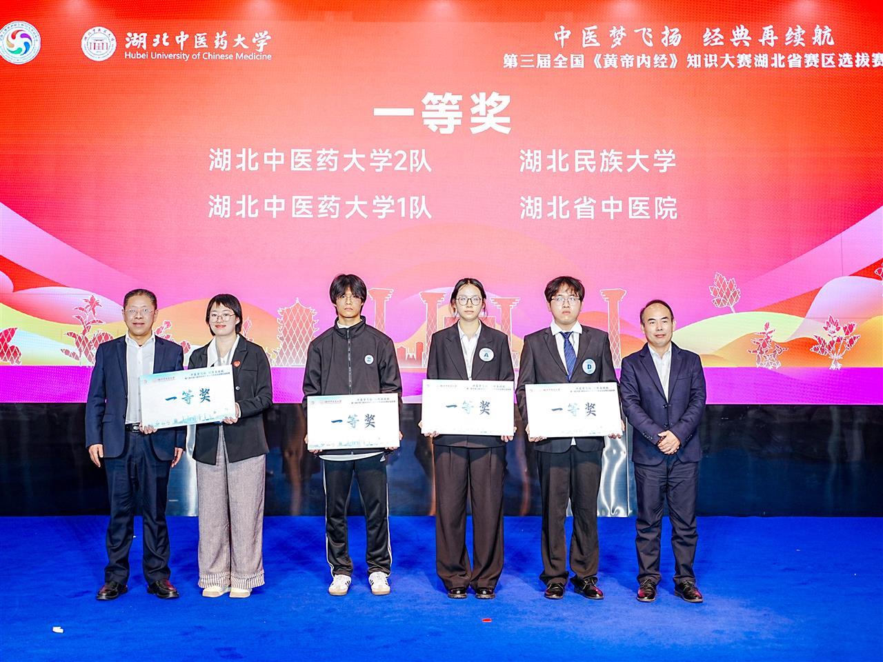 经过激烈角逐,湖北中医药大学二队和一队、湖北中医药大学附属医院(湖北省中医院)队、湖北民族大学队获一等奖,荆州市中医医院队、宜昌市中医医院队、仙桃市中医医院队、公安县中医医院队、黄冈市中医医院队、湖北省荣军优抚医院队获二等奖,咸宁市中医医院队等9支队伍获三等奖;大赛评选出优秀指导老师19人、优秀选手41人。与会领导及嘉宾为获奖队伍颁奖。