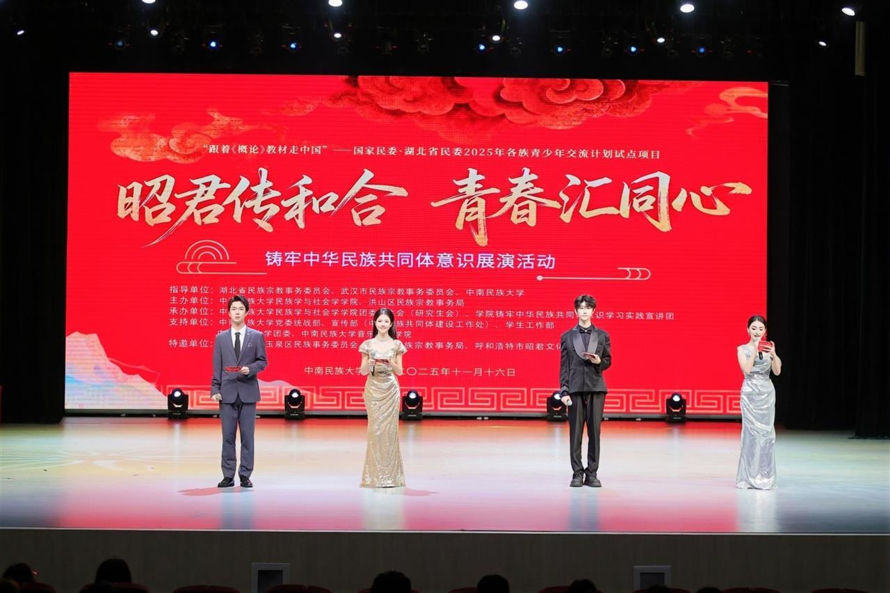 “讲好中华民族共同体的故事,要让历史走进现实,让文化浸润人心。”初冬的南湖畔,一场以“昭君传和合,青春汇同心”为主题的铸牢中华民族共同体意识展演在中南民族大学大礼堂启幕。