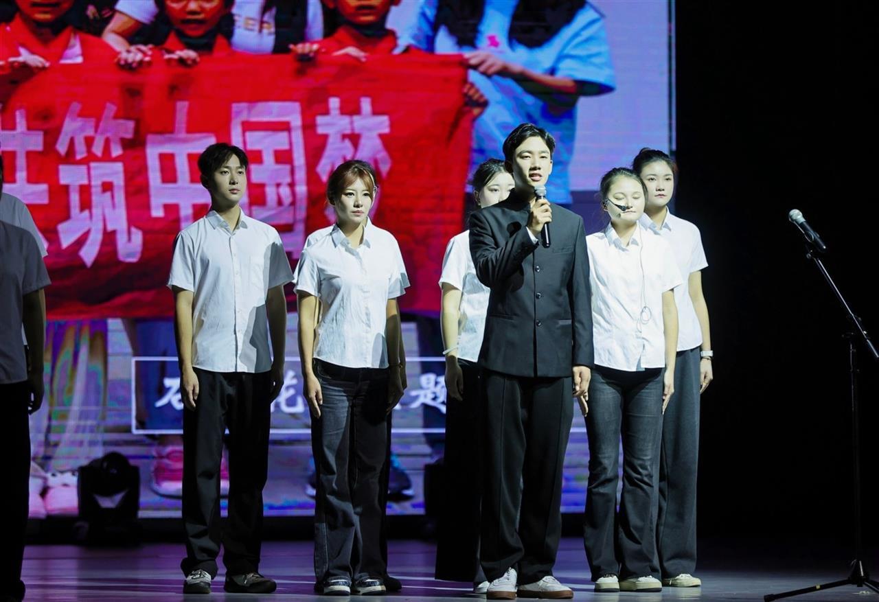 光影转换间,叙事转向新时代的真实记忆。青年讲述分享社会实践中的所见所悟,原创舞台剧《梦中的额吉》以深情而克制的演绎,再现“三千孤儿入内蒙”的动人篇章,草原母亲的大爱与各民族血脉相亲的深情在舞台上缓缓铺陈。