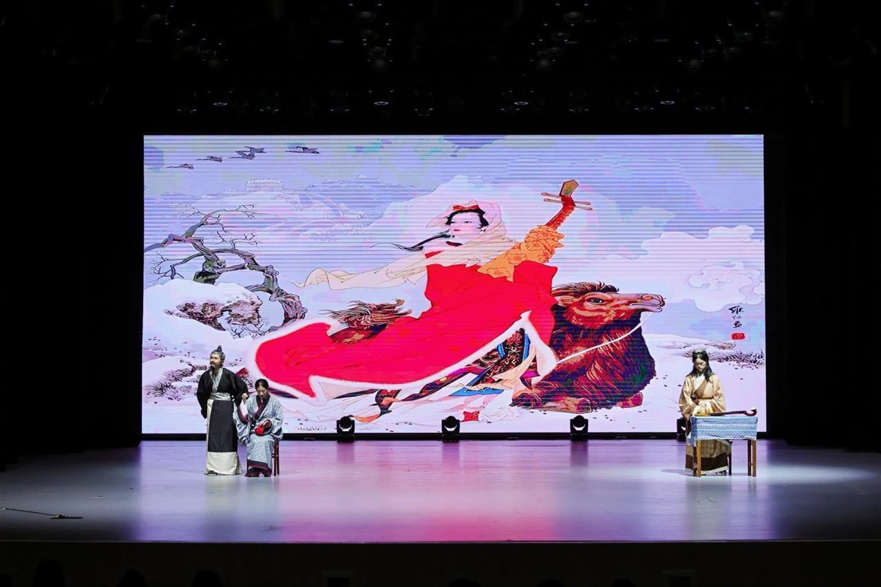 舞台演出在历史与现实之间自如流转。概念秀与舞蹈以写意化方式呈现昭君文化意象,引领观众回望中华民族多元一体格局的形成。随后的原创话剧《昭君出塞》则用青春化的舞台表达,再现和亲佳话,传递“和合共生”的主题。“站上舞台,我更能体会到昭君选择背后的勇气与担当。”饰演昭君的学生演员、该院2025级历史学专业龙丽表示,“用青春把这段故事讲给同龄人听,是一种责任,也是一种传承。”
