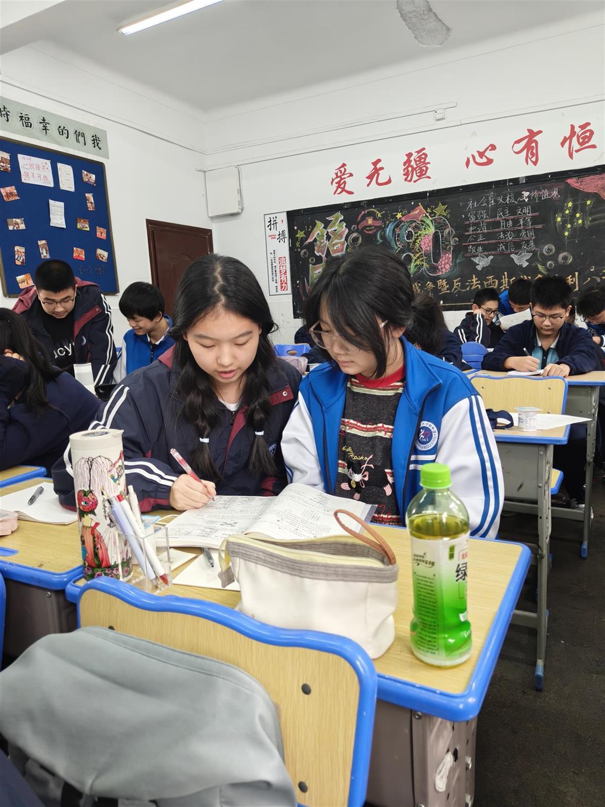 王笑妍(左)与同学交流学习