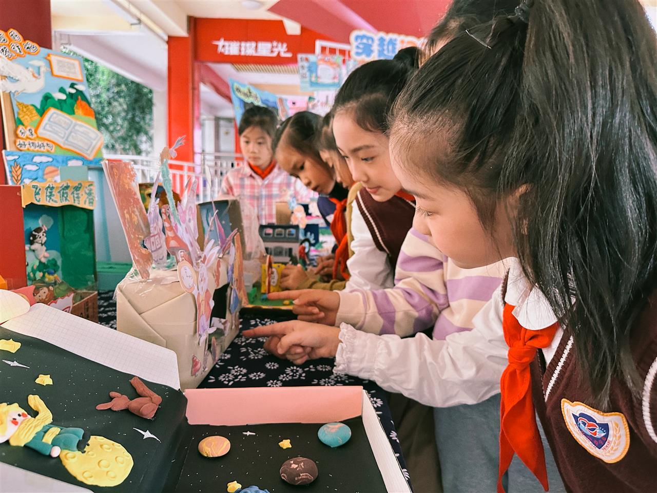 其他年级的展示也颇具特色:三年级的学生用泥塑、剪纸,再加上沉浸式的表演,让童话和神话里的人物好像从书里跳了出来。二年级举办了亲子红色故事会,爸爸妈妈和孩子一起讲故事,在温馨又亲密的互动中,把红色精神一代一代传承下去。一年级的学生们虽然年纪小,但是朗诵和表演都特别认真,用他们稚嫩又真诚的方式,给传统文化添上了可爱的童趣。六年级的大哥哥大姐姐们则拿起笔,写下对“长征魂”的理解,还用剪纸剪出英雄的模样,在艺术创作里接受了一次深刻的精神教育。