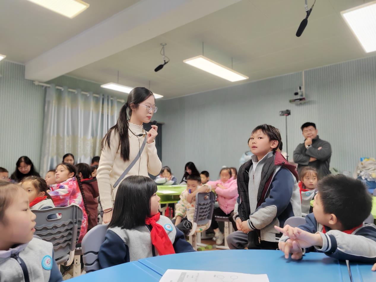 11月19日下午,华中师范大学科学教育研究生团队走进青山区钢都小学,开展城乡结对学校联合同步课堂教学活动。主讲教师谭思遥以钢都小学为主课堂,线上联动新洲区旧街街中心小学,为三年级学生带来《奇妙的榫卯结构》科学课程。