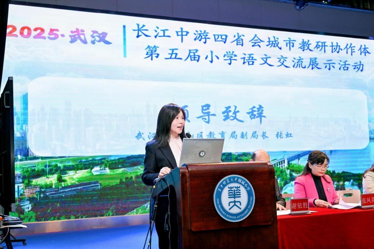 27日上午8:30,开幕式如期举行。洪山区教育局副局长张虹首先致欢迎辞,她介绍,洪山区是首届湖北省基础教育教研实验区,本次活动举办地华中师范大学附属小学人才济济,智慧教学特色鲜明,曾亮相世界数字教育大会,充分彰显武汉教育实力。她还特别提到四城人文相亲、同崇尊师重教之风,区域教研协作体已取得丰硕成效,希望以今日再聚为新起点,四城教育同仁进一步深化创新合作、拓宽教研维度、精进育人艺术。