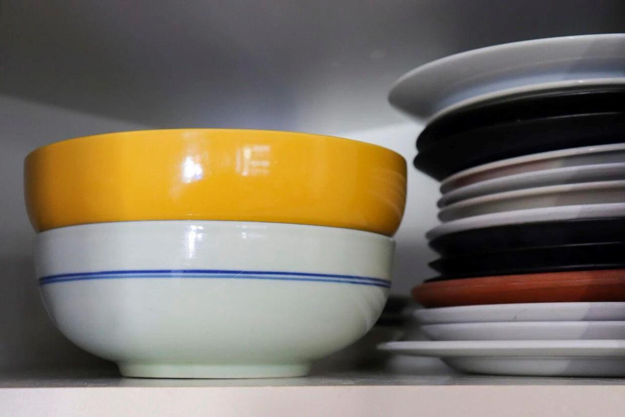 清洗后的餐具摞着放