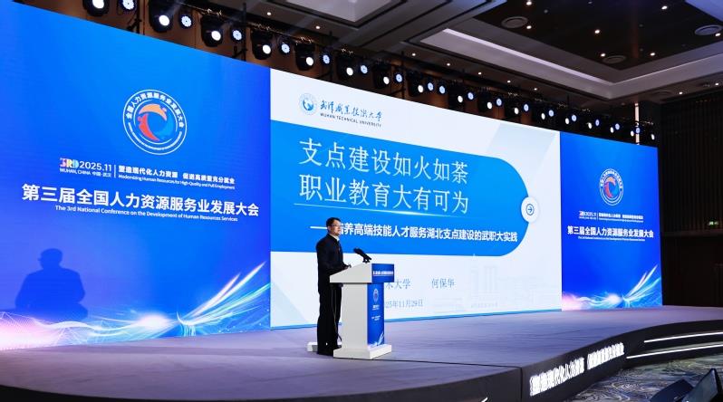 何保华以《支点建设如火如荼,职业教育大有可为——培养高端技能人才服务湖北支点建设的武职大实践》为题作大会发言。他强调,职业教育是支撑区域产业发展和现代化建设的重要力量。作为湖北省第一所职业本科学校,武汉职业技术大学52年来扎根光谷,始终牢牢把握发展战略机遇,在引才、育才、供才各环节精准发力。学校紧密对接湖北“51020”现代产业集群,通过构建“把专业建在产业链上”的体系、深化“校企双元育人”模式,成功培养了一批扎根湖北的高端技能人才,为区域产业的升级发展提供源源不断的人力资源,让“武职力量”深度融入托举中部崛起的坚实基座。
