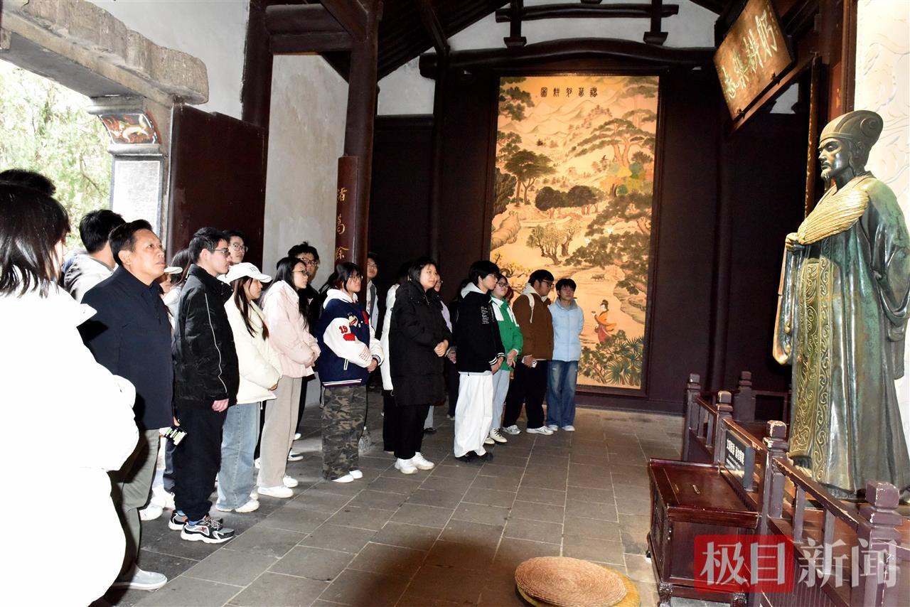 师生们循着先贤足迹,在古隆中牌坊前,该校文学与传媒学院高新伟教授从“淡泊明志,宁静致远”的千古名句谈起,解读牌坊楹联“三顾频烦天下计,两朝开济老臣心”,将诸葛亮忠贞为国、鞠躬尽瘁的一生娓娓道来。移步“明良千古”展厅,珍贵的文物与展陈无声讲述着诸葛亮从耕读隐居到受托辅政的历程;武侯祠内,庄重的塑像令人肃然起敬;三顾堂前,“三顾茅庐”的典故仿佛重现。历史场景的切换,让书本上的文字变得可触可感,隆中精神中深厚的人文积淀与家国情怀直抵人心。