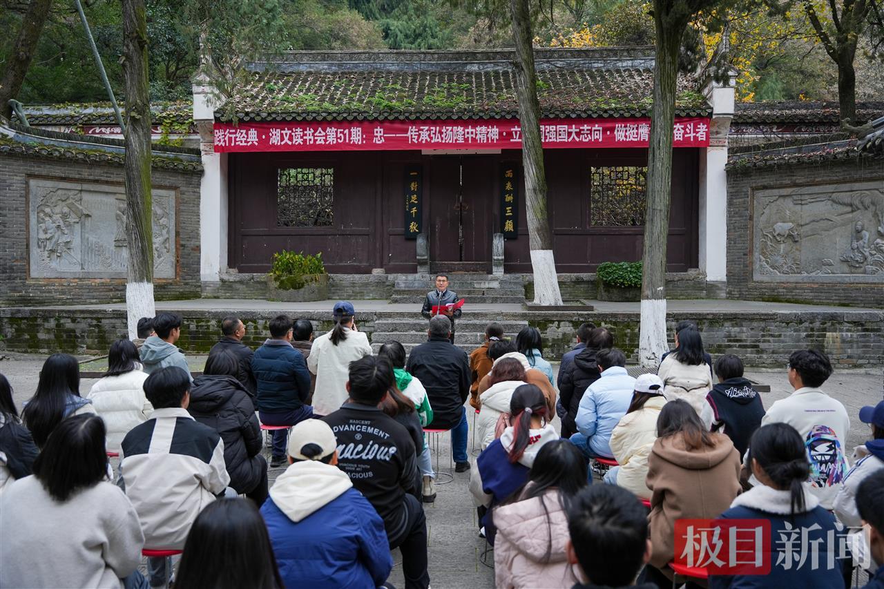 冬日的古隆中,清幽肃穆。12月4日下午,湖北文理学院第五十一期“湖文读书会”在此间举行。这场以“传承弘扬隆中精神立报国强国大志向做挺膺担当奋斗者”为主题的活动,将课堂从校园移至三国历史文化遗址,通过一场沉浸式的实地教学,引导师生深度探寻与感悟中华传统美德中“忠”的精神内核。