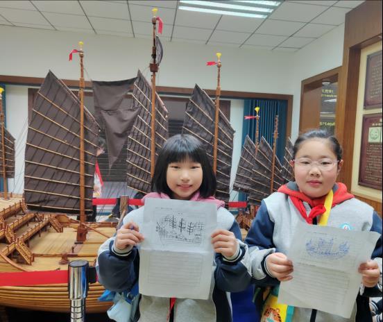 志愿者一边讲解,一边向同学们提问,大家不时参与问答、认真倾听、仔细记录。一双双好奇的眼睛,见证了航海的变迁与发展,领略了船舶工艺的传承和革新。