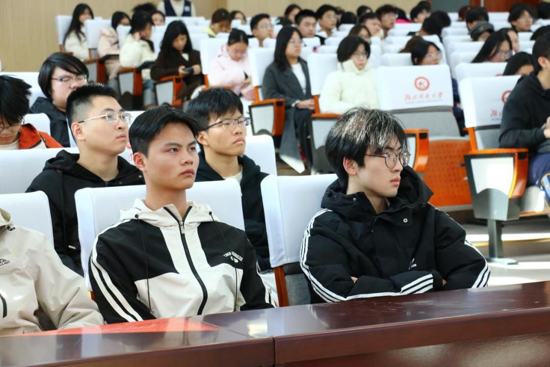 互动环节成了“校园法治答疑会”。“被欺负了怎么用法律维权”“网上赌球算违法吗”……师生抛出的问题全是校园高频场景。刘旭用“保留证据找辅导员,严重时报警”“赌球不论大小都违法”等直白回答,把专业法律知识讲得明明白白。机电工程学院学生小刘听完赶紧记笔记:“原来借手机卡给别人都可能犯法,这堂讲座比课本实在多了!”