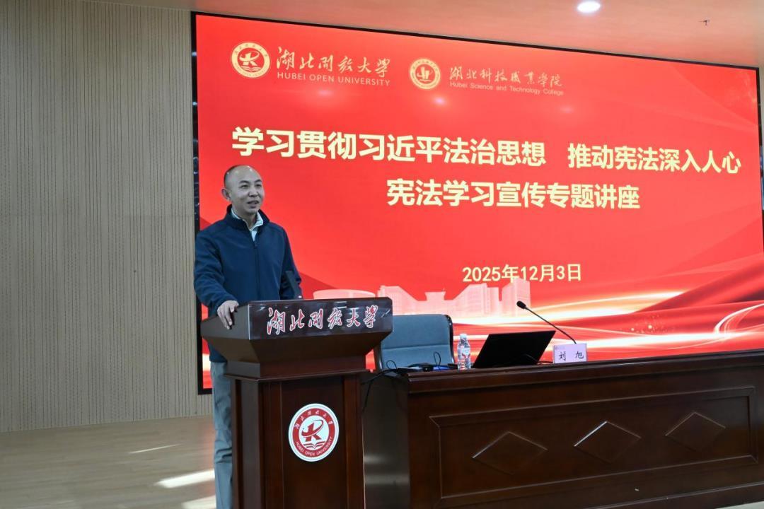 12月3日下午,在第十二个国家宪法日来临之际,湖北科技职业学院综合实训楼学术报告厅内座无虚席——由校党委宣传部主办、机电工程学院承办的专题法治讲座在此开讲。