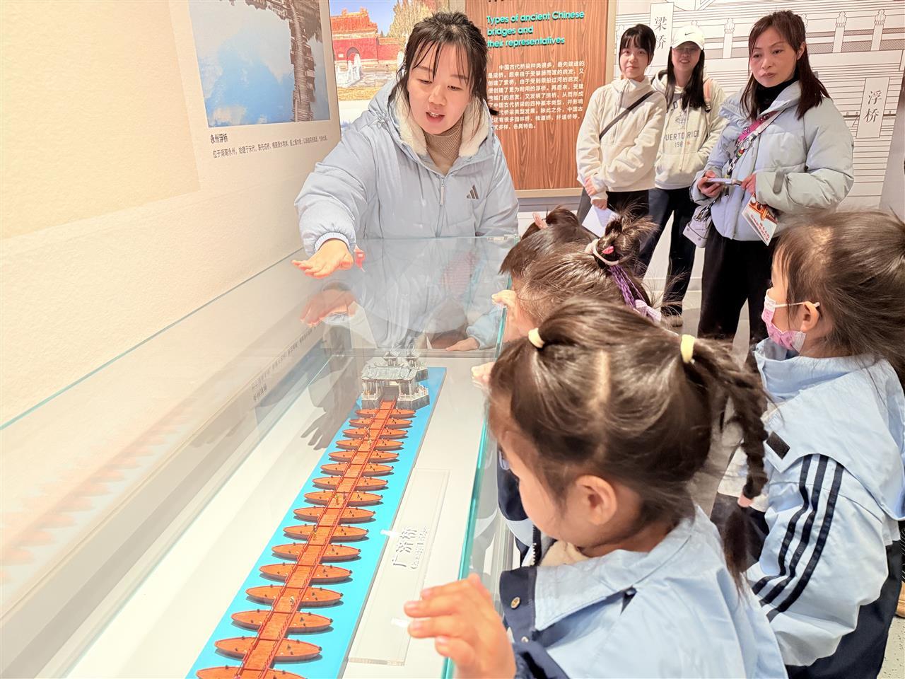 “桥上汽车火车跑,桥下轮船呜呜叫!”12月5日下午,武汉桥梁博物馆里传来阵阵童声,硚口区机关幼儿园中三班的萌娃们牵着家长的手,在这里开启了一场别开生面的“桥梁奇遇记”。这场以“家伴‘桥’行,爱暖研学”为主题的亲子实践活动,让童年好奇心与武汉“桥都”传奇撞了个满怀。