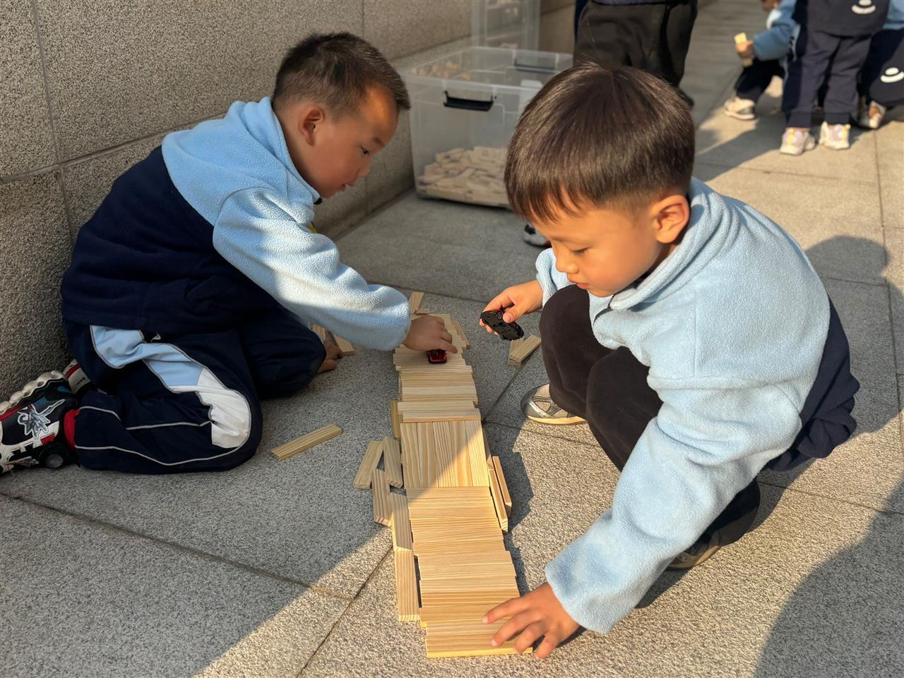 最热闹的当数“小小工程师”环节。家长们与孩子分工合作,有的共同筑牢“桥墩”,有的携手铺平“桥面”,有的一起设计“彩虹栏杆”与“轮船通道”。面对“桥面不平整”“桥墩不稳”等问题,家长与孩子共同讨论解决方案,在协作中锻炼动手能力与问题解决能力。搭建完成后,一场温馨的“通车仪式”如期举行,亲子手举玩具汽车缓缓“驶过”自制桥梁,欢声笑语中满是合作的成就感。
