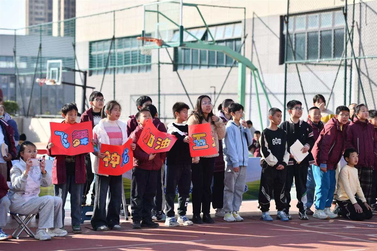 据了解,这次运动会不仅有200米、800米、团体跳绳、跳高等16项传统竞技项目,让擅长运动的同学大展身手,在赛场上尽情拼搏;还充分考虑一、二年级学生的特点,专门设置了“趣味平衡走”“篮球运球绕桶”“彩色布袋跳”等10项趣味团体项目。在趣味活动现场,小运动员们笑声不断,在欢乐中培养对体育的兴趣,锻炼强健的体魄。“我今天可开心啦,参加了迷你篮球投准赛和接力赛!”一(3)班的陈果同学说。校园里,两个赛场的加油声此起彼伏,响彻云霄。