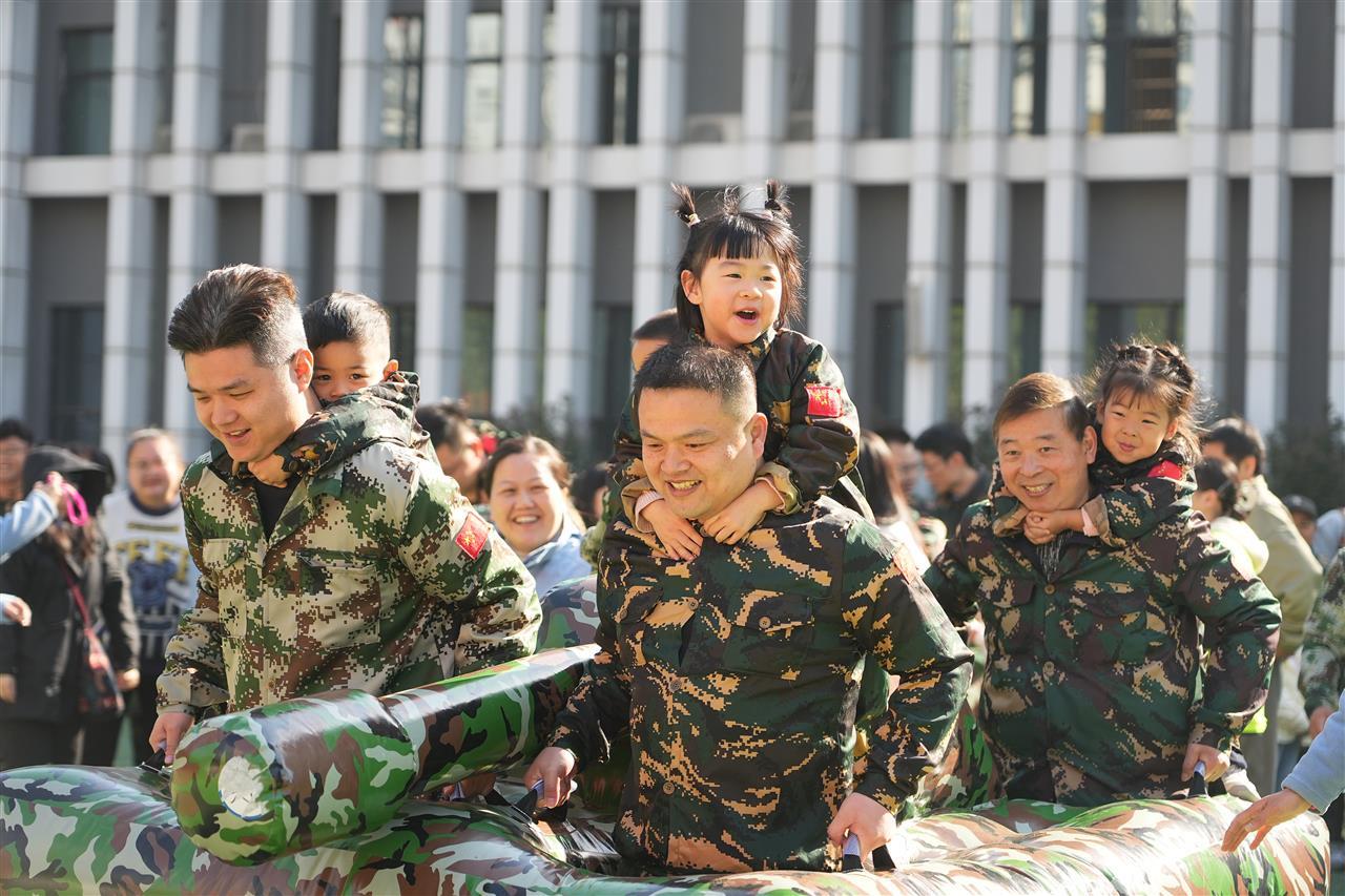 近日,武汉市武昌区沙湖幼儿园里一片“军绿色”——全体孩子和家长身穿迷彩服,变身“大小兵”,在冬日暖阳中开启了一场别开生面的亲子运动会。这场以“自然‘趣’闯关,萌娃勇向前”为主题的活动,将自然探索、体能挑战与亲子协作融为一体,让孩子们在游戏中锻炼,也让家长找回了对陪伴的专注与感动。