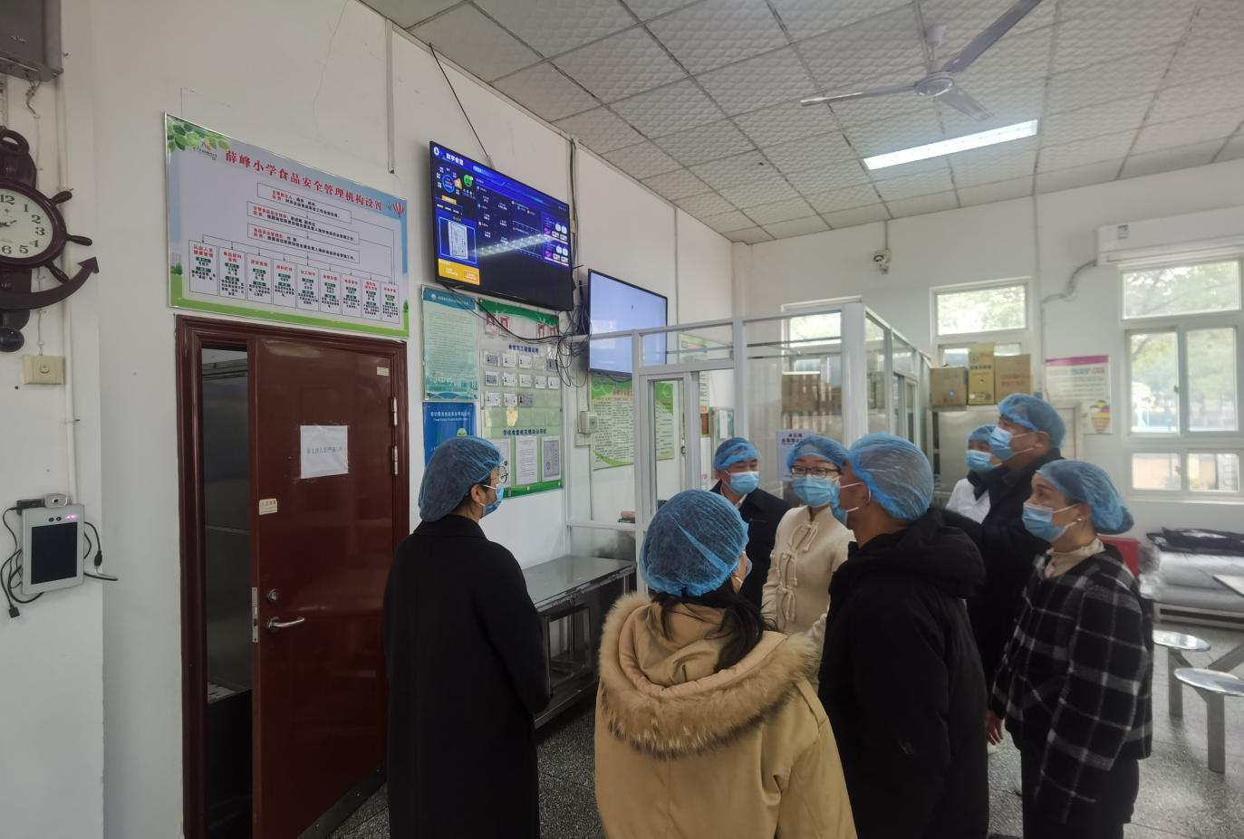考察组一行在校长韩芳带领下,走进了食堂后厨。在仓库里,所有米、油、肉、菜的进货单、检疫证明都整齐可查,供应商和价格全部贴在墙上公开。在财务公示栏,每月伙食费的收入、支出明细一目了然,学校通过“数字食堂”系统做到专款专用、每笔可查,从源头防止了不规范操作。