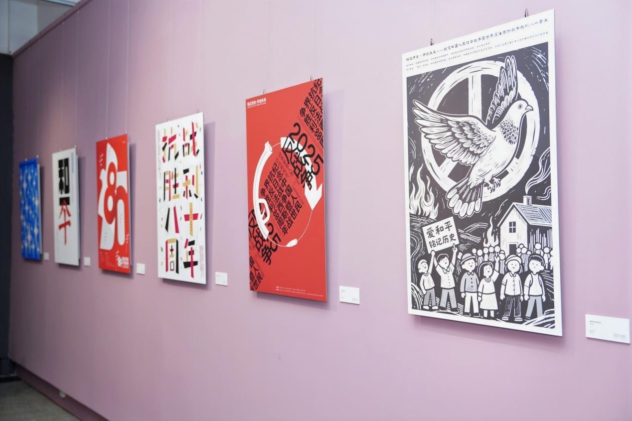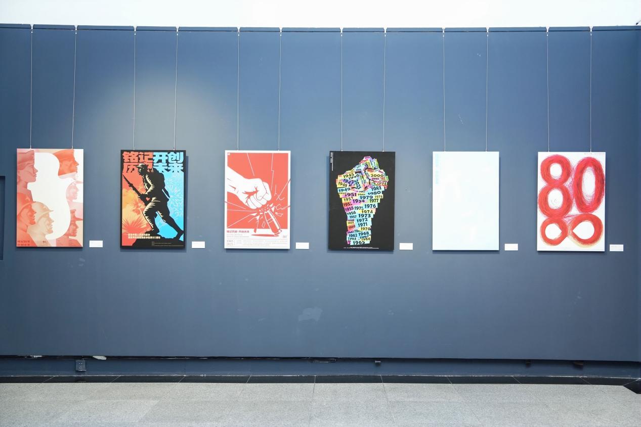 铭记历史·开创未来——纪念中国人民抗日战争暨世界反法西斯战争胜利80周年主题海报设计展积极引导广大艺术设计工作者不忘初心、牢记使命,以海报为媒介,向青年一代传递铭记历史、缅怀先烈、珍爱和平、开创未来的时代责任,弘扬中华民族伟大的抗战精神与爱国主义情怀。本次展览共收到全国投稿作品3152件,经严格评审,最终精选出163件作品展出。这些作品主题鲜明、语言多样,或凝重深沉,或雄浑激昂,或意象鲜明,或构思新颖,展现出设计者对民族历史的深刻理解与视觉转译,传递出对和平愿景的真诚向往与时代思考,彰显出海报艺术在重大主题创作中的精神凝聚力和形式创造力。