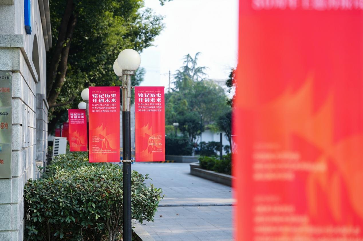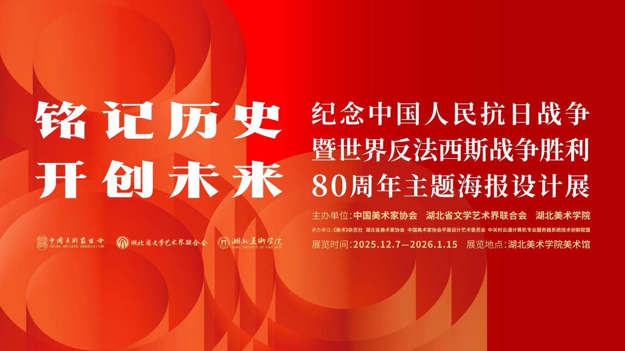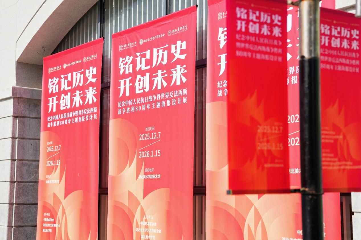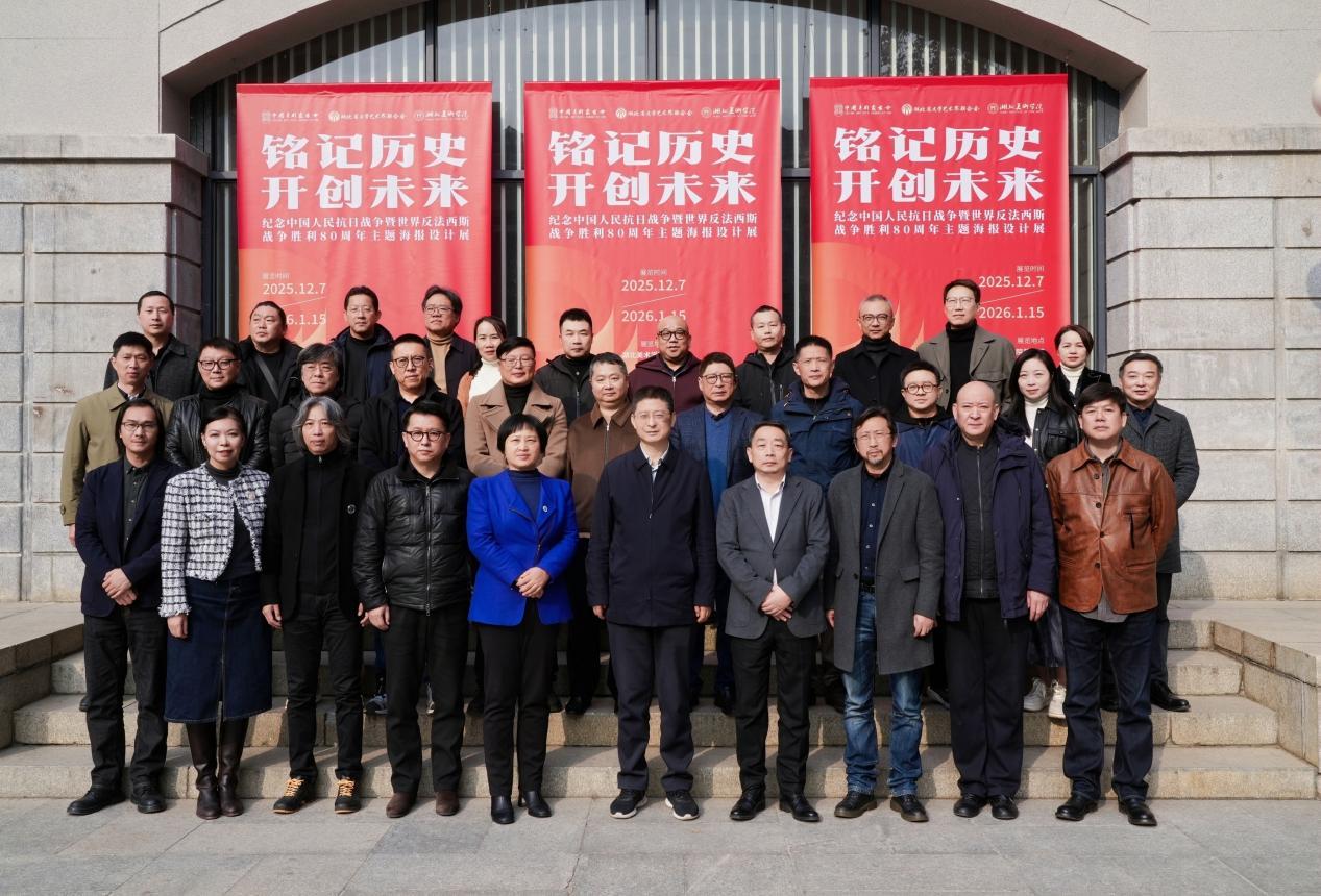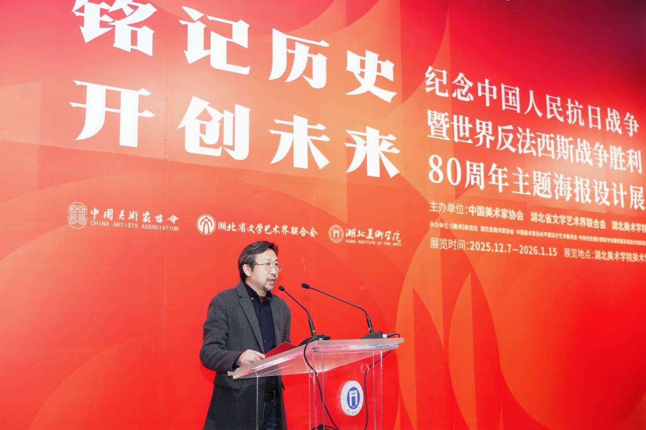 12月9日下午,铭记历史·开创未来——纪念中国人民抗日战争暨世界反法西斯战争胜利80周年主题海报设计展在湖北美术学院美术馆开幕。展览由中国美术家协会、湖北省文学艺术界联合会、湖北美术学院联合主办,《美术》杂志社、湖北省美术家协会、中国美协平面设计艺术委员会、中关村云通计算机专业服务器系统技术创新联盟承办。