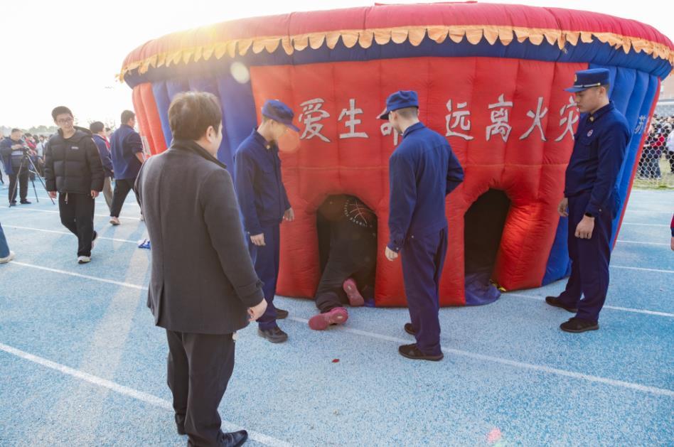 现场还设置了一个充满挑战的环节——模拟救生帐篷体验。同学们积极报名,勇敢地走进那座模拟火灾现场的帐篷。帐篷内烟雾弥漫,视线受阻,仿佛置身于真实的火灾环境之中。消防员在一旁耐心指导,讲解着火灾逃生时爬卧逃生的技巧:“身体尽量贴近地面,用湿毛巾捂住口鼻,沿着墙壁摸索前进……”同学们认真聆听,仔细模仿,在黑暗中努力寻找着“生”的希望。当他们成功“逃出”帐篷时,现场响起了经久不息的欢呼声。