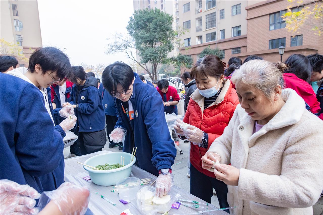 “今天我们不刷题,来包一场暖心的饺子宴!”12月10日下午,武汉市江夏区金槐社区活动中心热闹非凡,主角是一群有点特殊的“厨师”——江夏区金口中学高三年级A部年级组的老师们和72名学生,这群高三学子,放下试卷,在这里与金槐社区共同上演了一场特别的“暖冬饺子宴”。铺桌布、装馅、捏褶……一场“手忙脚乱”却又暖意融融的包饺子大赛正式开启。