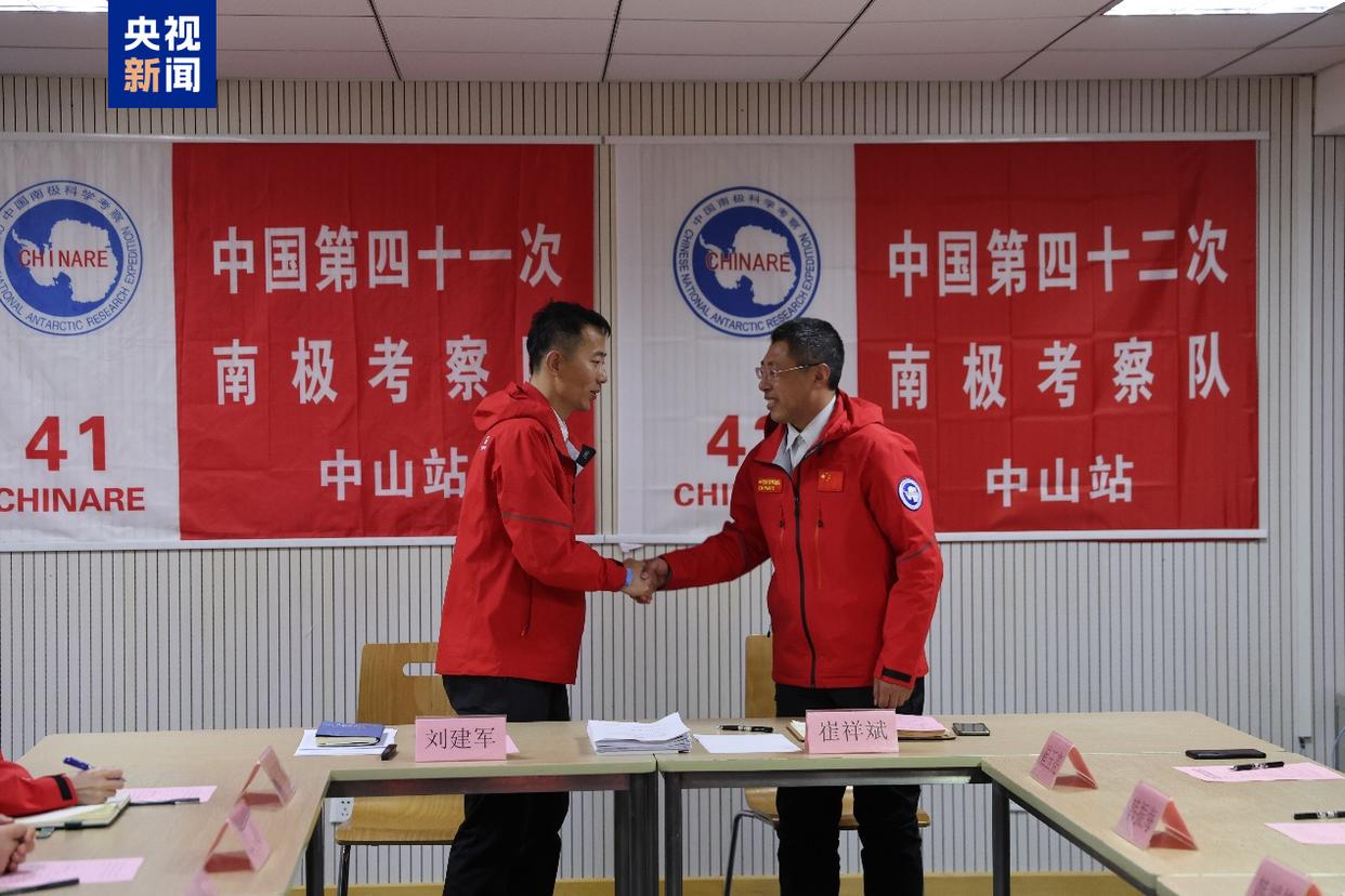 随着中国第41次南极考察队中山站卸货作业接近尾声,今天(12月12日),中国第41次南极考察队中山站站长刘建军与中国第42次南极考察队中山站站长崔祥斌分别在中山站工作交接书上签字,标志着运行管理中山站的重任正式交到中国第42次队中山站队员手上。