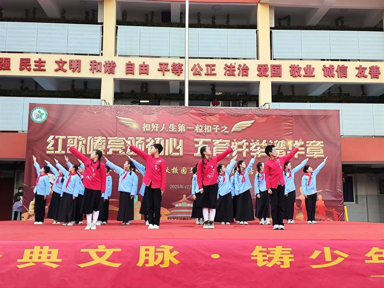 建设书香校园,涵养阅读文化。武汉市蔡甸区第二小学以“书香校园”建设为抓手,通过经典诵读、读书节活动、家校共读等形式,构建全方位、多层次的阅读育人体系。12月18日,一场以“守匠心传经典 逐童梦启新程”为主题的迎新诵读活动在二小校园盛大开幕。本次活动由《诗韵传薪·文脉润心》《少年逐光·笃志力行》《丹心向国·逐梦山河》三个篇章组成。