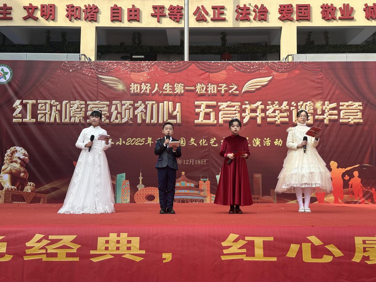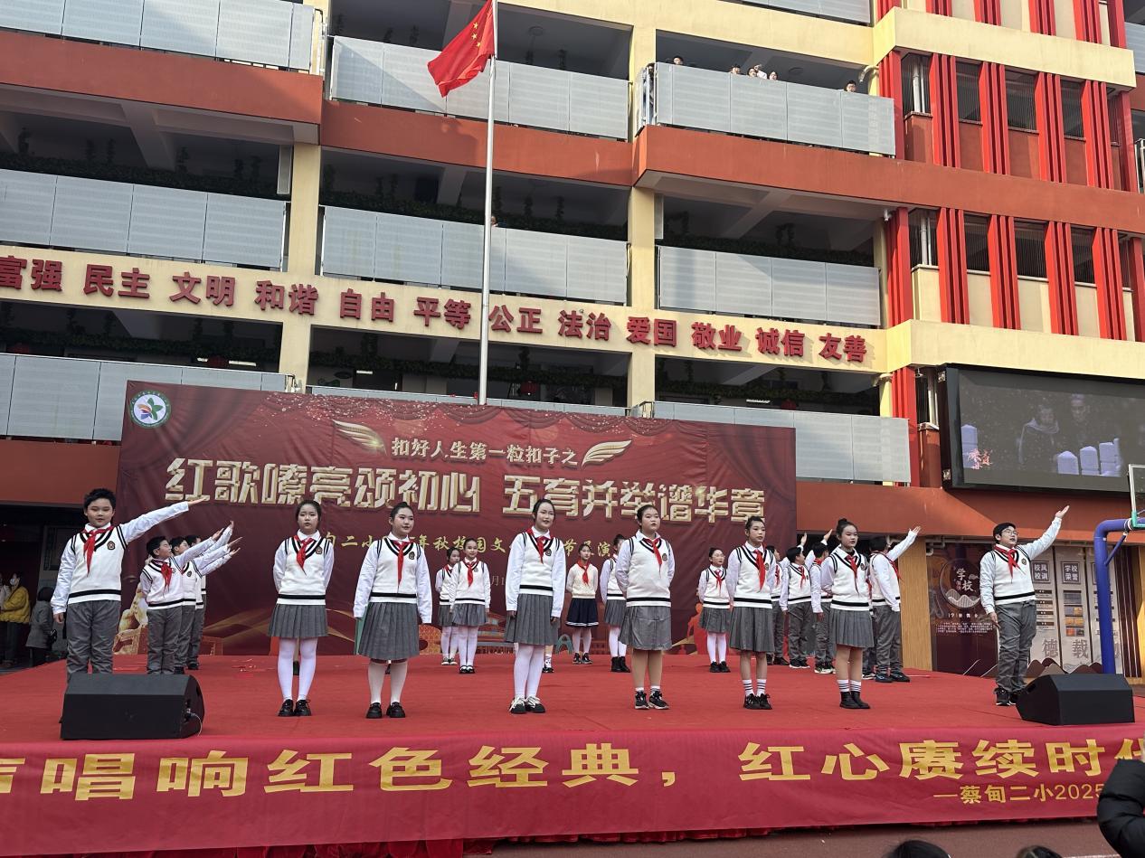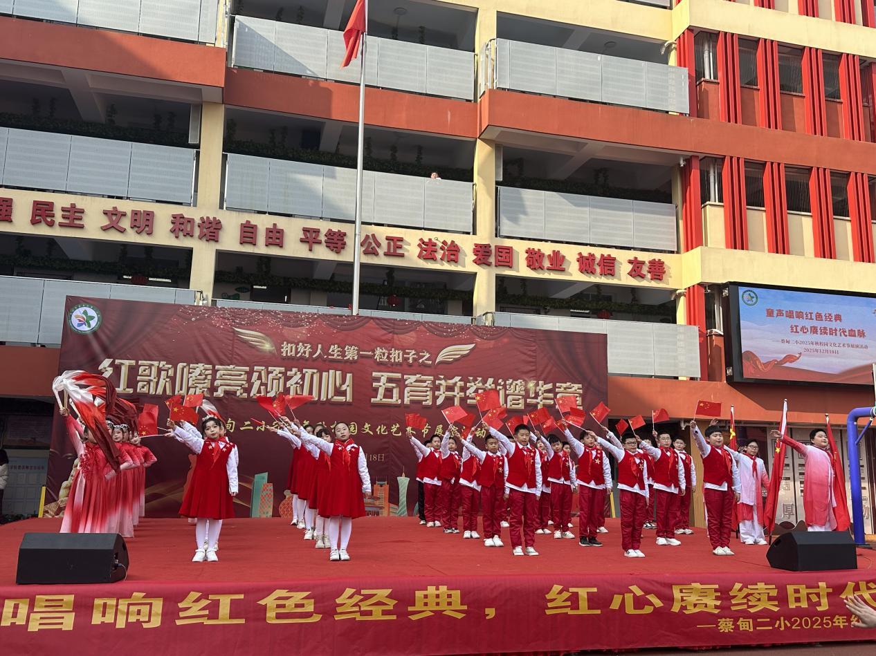 岁聿云暮,万象更新。12月18日下午,武汉市蔡甸区第二小学校园内歌声嘹亮、激情澎湃,“童声唱响红色经典,红心赓续时代血脉”2025年校园红歌合唱比赛在此隆重举行。全校师生齐聚一堂,以歌为史,以声为画,共同演绎了一堂生动而深刻的红色思政课。