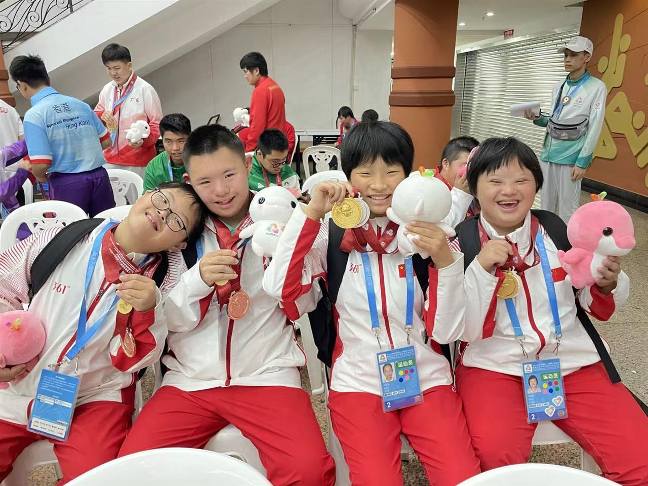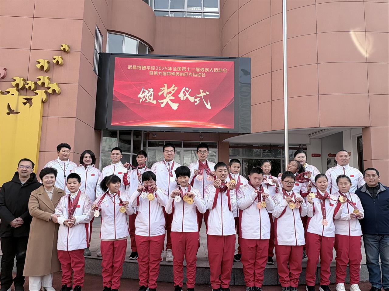 从赛场失控滑行到站上领奖台,从听见嘈杂就紧张到在呐喊中稳定发挥——在本届残特奥会上,武汉市武昌区培智中心学校的奖牌背后,藏着一把特殊的“钥匙”:脱敏训练。教练们用模拟赛场噪音、黑暗环境接力等方式,帮助孤独症运动员们一点点打开心扉、适应赛场,最终15名运动员拿下9枚金牌,勇夺34枚奖牌,创下学校历史最佳战绩。