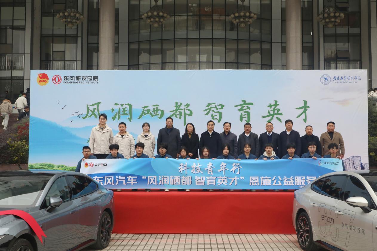 12月19日,“风润硒都·智育英才”科技青年行——恩施公益服务行活动在恩施职业技术学院举行。东风汽车集团有限公司研发总院向恩施职业技术学院、恩施州民族技工学校捐赠教学用车及专业图书,并开展技术公开课活动。