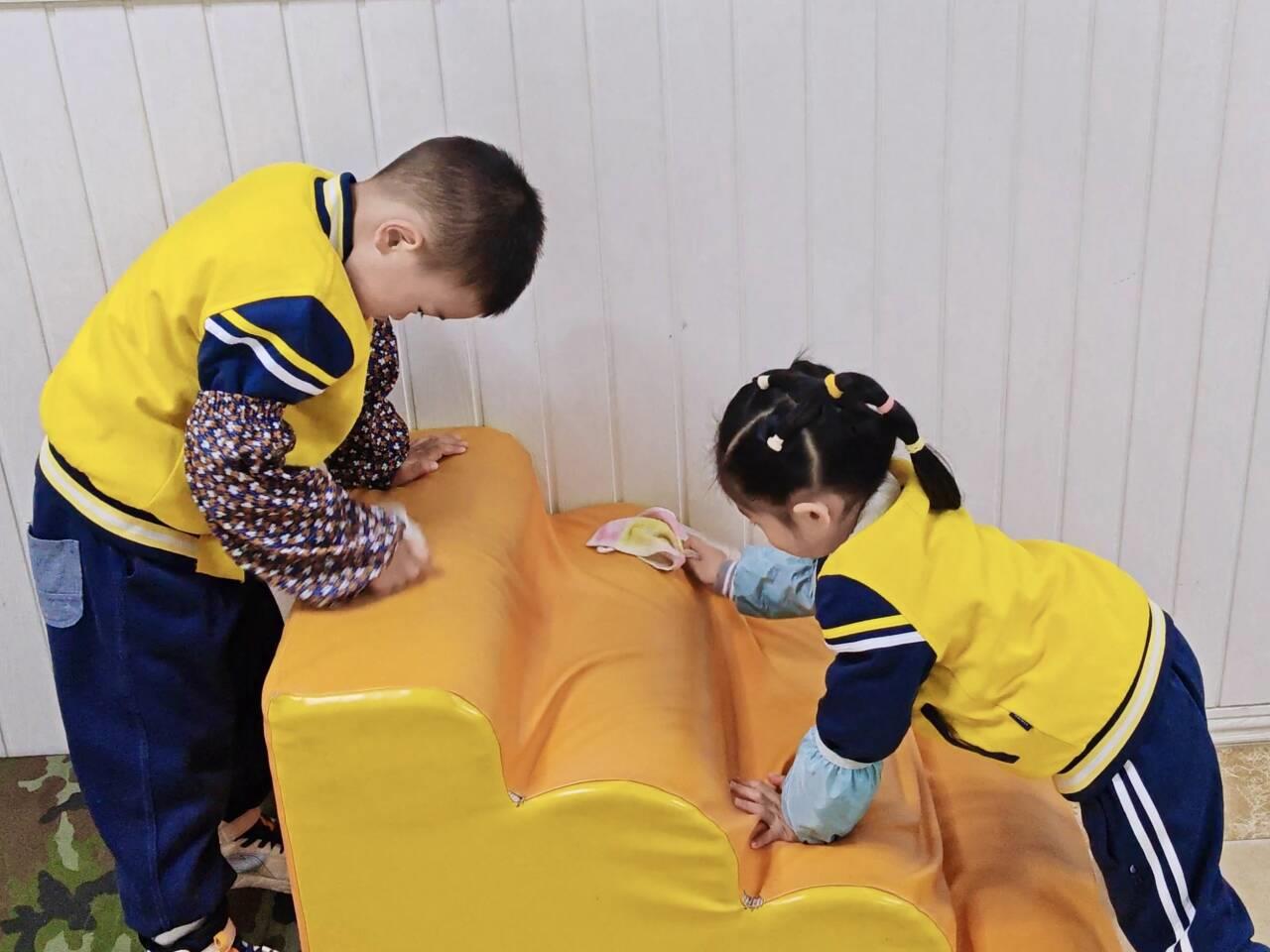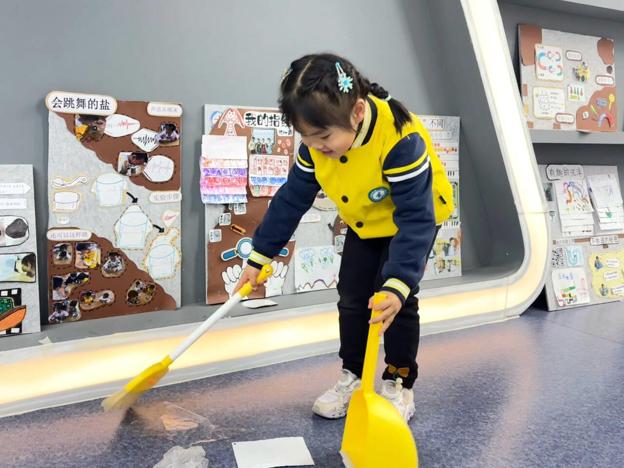 “幼儿阶段的劳动教育,核心是培养‘爱劳动、会劳动、懂珍惜’的品质。”一幼绿地花园园副园长徐曼介绍,幼儿园以“大健康”理念为统领,构建了“德知情行”四维育人体系,将劳动教育与德育启蒙、健康教育有机融合。“我们不追求劳动成果的完美,而是注重让孩子们在搓洗、整理、清扫的过程中,感知劳动的价值,学会尊重他人的劳动付出。”