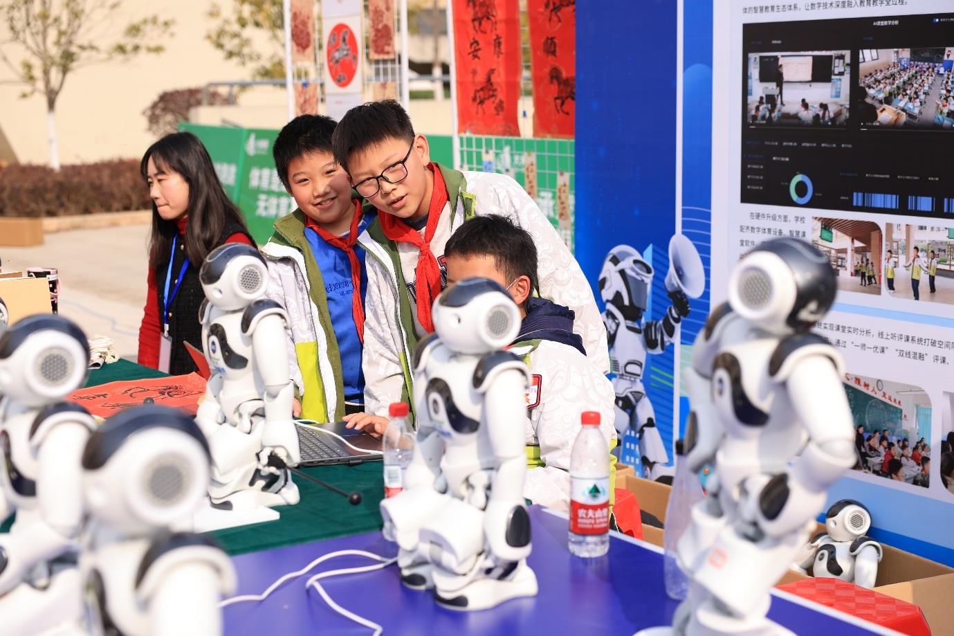 VR数字展厅内,2300余件学生绘画、书法作品通过三维建模与交互技术全景呈现,突破传统展厅时空限制,极大激发了学生创作热情。此外,古驿路校区的“智慧食堂”通过AI智能分析营养结构和餐余情况优化菜谱与采购,军运村校区将AI课程纳入数字化管理,构建起全链条数字化保障体系。