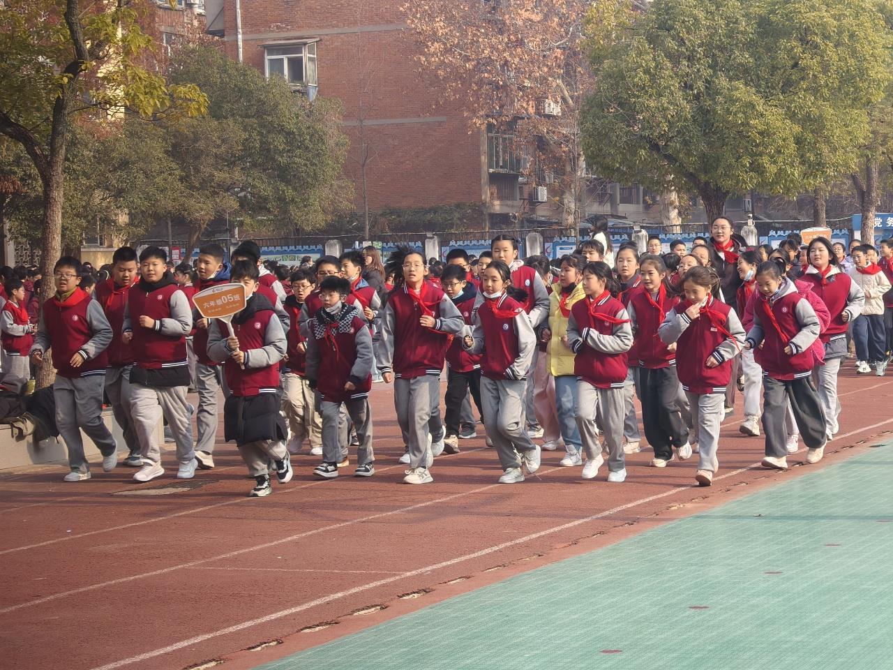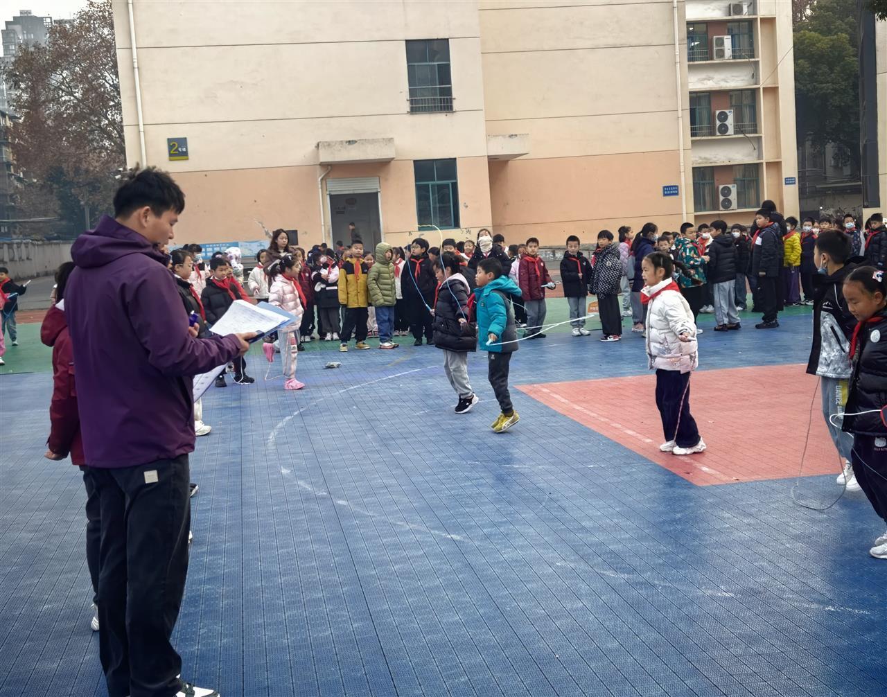赛事期间,早锻炼与大课间的校园赛场热闹非凡。跳绳项目中,绳子翻飞如织,选手们动作敏捷;接力赛道上,队员们默契配合、奋勇争先;集体项目里,同学们互帮互助、凝聚一心。班主任与学生志愿者全程护航,负责老师精准把控赛事流程,加油声、呐喊声此起彼伏,展现出师生同心、奋勇拼搏的良好氛围。
