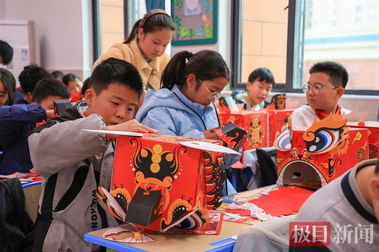 手工制作环节则成为孩子们亲近非遗、动手创造的生动课堂。在老师和大学生们手把手的指导下,孩子们认真裁剪、拼贴,将平面材料变成立体灵动的狮头作品。“看,我做的醒狮头成功了!”学生孔祥麟高举自己的作品,眼中满是自豪。指尖流转之间,非遗不再是书本上的概念,而成了可触摸、可创造的文化印记。