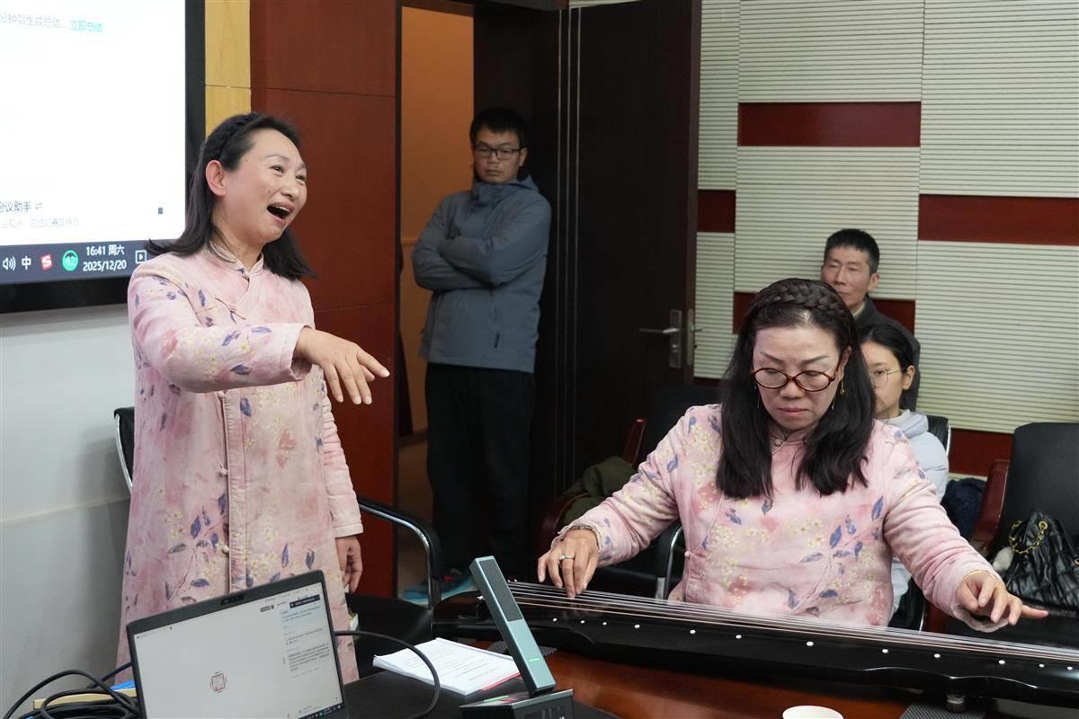 现场最为动人的“声音之礼”,来自一场穿越千年的吟唱。汉调吟诵传承人薛姣,在古琴演奏者文珣的伴奏下,以古法汉调吟诵中华诗词学会顾问罗辉为侯教授创作的集句鹧鸪天,别有风味。琴声泠泠,吟韵悠远,宛转千年文脉。