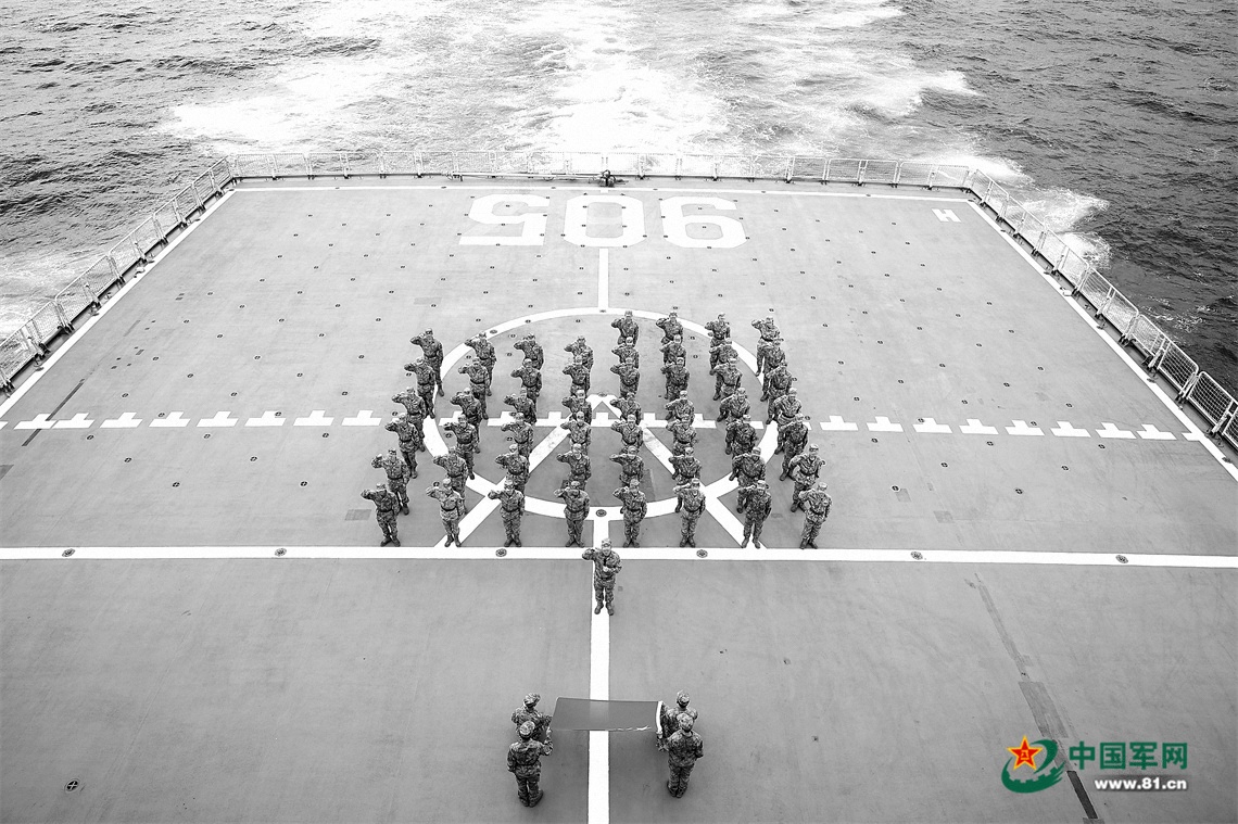 国防科技大学气象海洋专业学员实习期间在舰船甲板重温入伍誓词。李士成摄