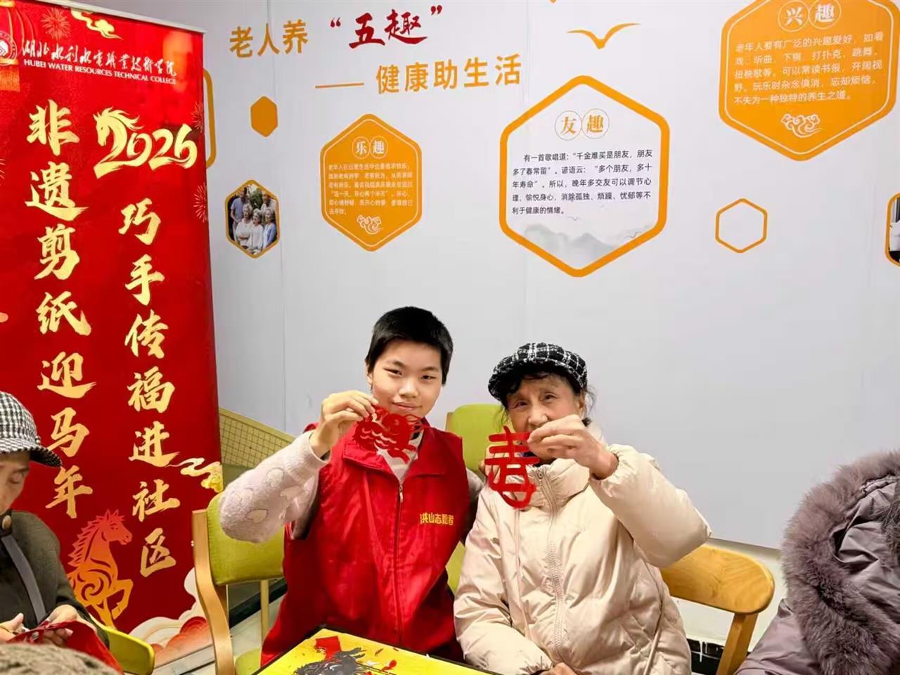 冬日细雨在社区活动室的玻璃窗上划出细密痕迹,窗内,一张张铺开的红纸正静静地散发着暖意。手指翻飞间,纸屑如蝶纷落,一匹匹矫健的纸马渐渐显露轮廓。12月24日下午,在武汉市珞珈雅苑社区活动中心,一场别开生面的“非遗剪纸迎马年,巧手传福进社区”活动吸引了许多居民参与。而站在讲台前,耐心指导每一位学员的,正是湖北水利水电职业技术学院“汉遗纸韵”非遗剪纸社团的负责人李一凡。