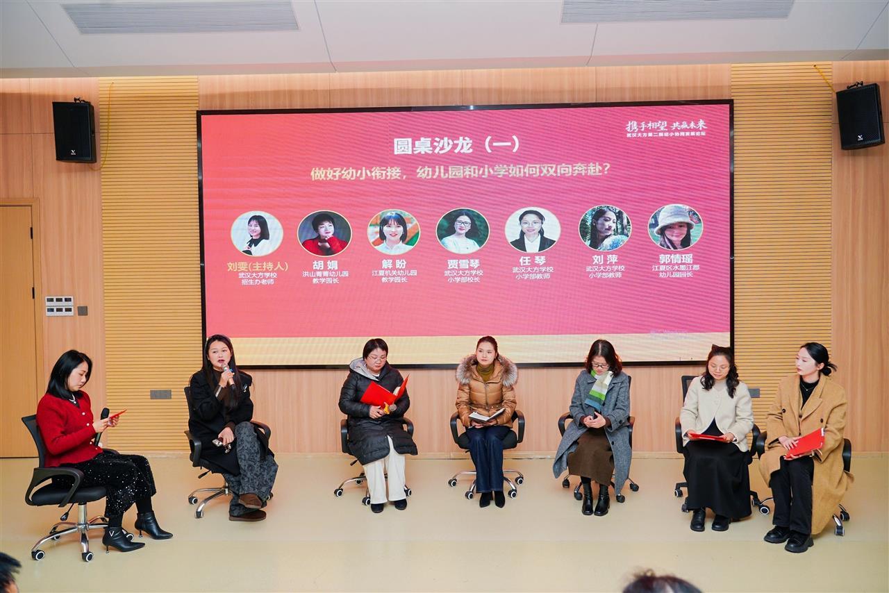 随后的圆桌沙龙环节,为一线教育者提供了坦诚交流的舞台。首场沙龙聚焦幼小衔接如何实现“双向奔赴”。洪山区菁菁幼儿园园长胡娟、江夏区机关幼儿园教学园长解盼等与大方学校小学部的校长、教师面对面。幼儿园方分享了他们在日常课程中,如何像“撒盐”一样自然融入任务意识、时间观念等衔接准备,坚持“不抢跑、不灌输”。小学教师则“接招”,详细介绍了为一年级新生专门设计的“25分钟教学+10分钟游戏”课堂缓冲模式,以及生活化的过渡策略。双方共同认识到,衔接不是“抢跑”,而是“稳跑”,必须通过课程、习惯、心理等多方面协同,帮助孩子缓坡上行。