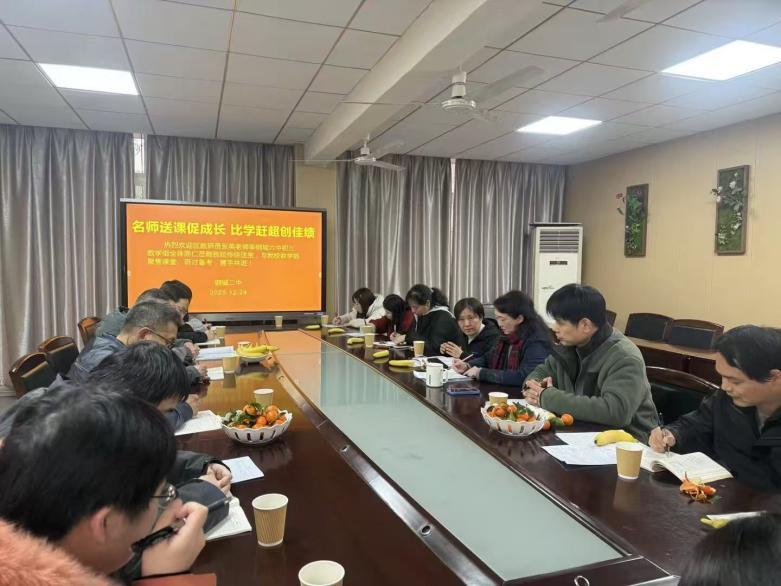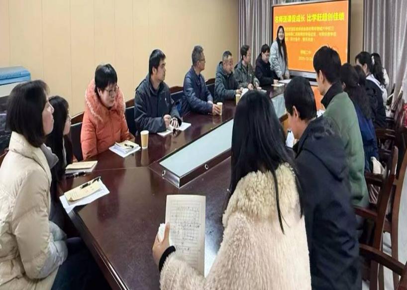 为提升数学学科教学教研水平,12月24日,武汉市青山区钢城二中特邀钢城六中九年级数学组来校开展送课交流活动。此次活动由钢城六中数学教育世家出身的周映红老师送课,青山区初中数学教研员张英老师莅临指导,钢城六中五位骨干教师、钢城二中全体数学老师及两校领导全程参与。