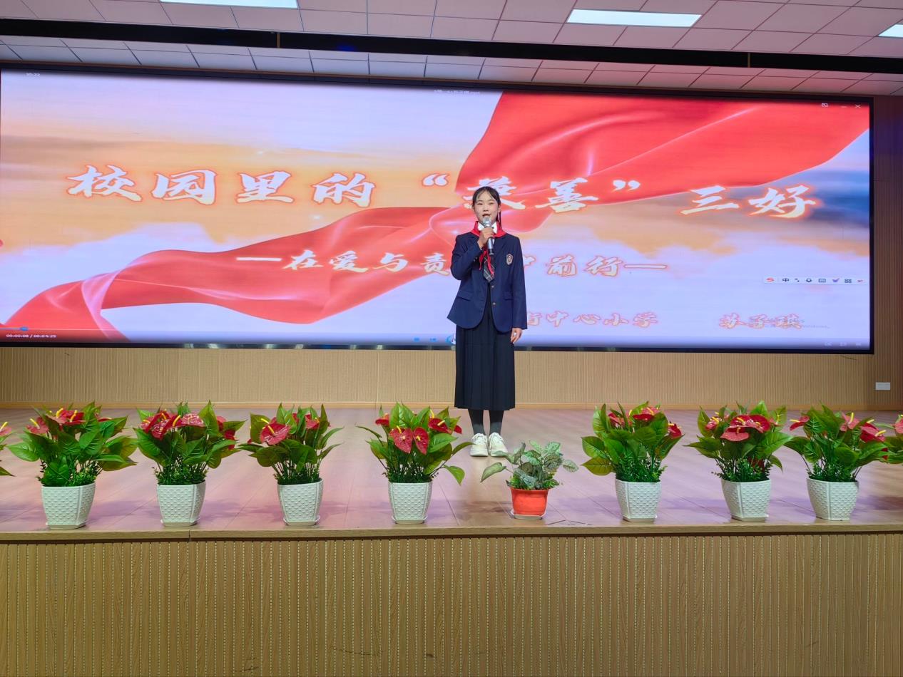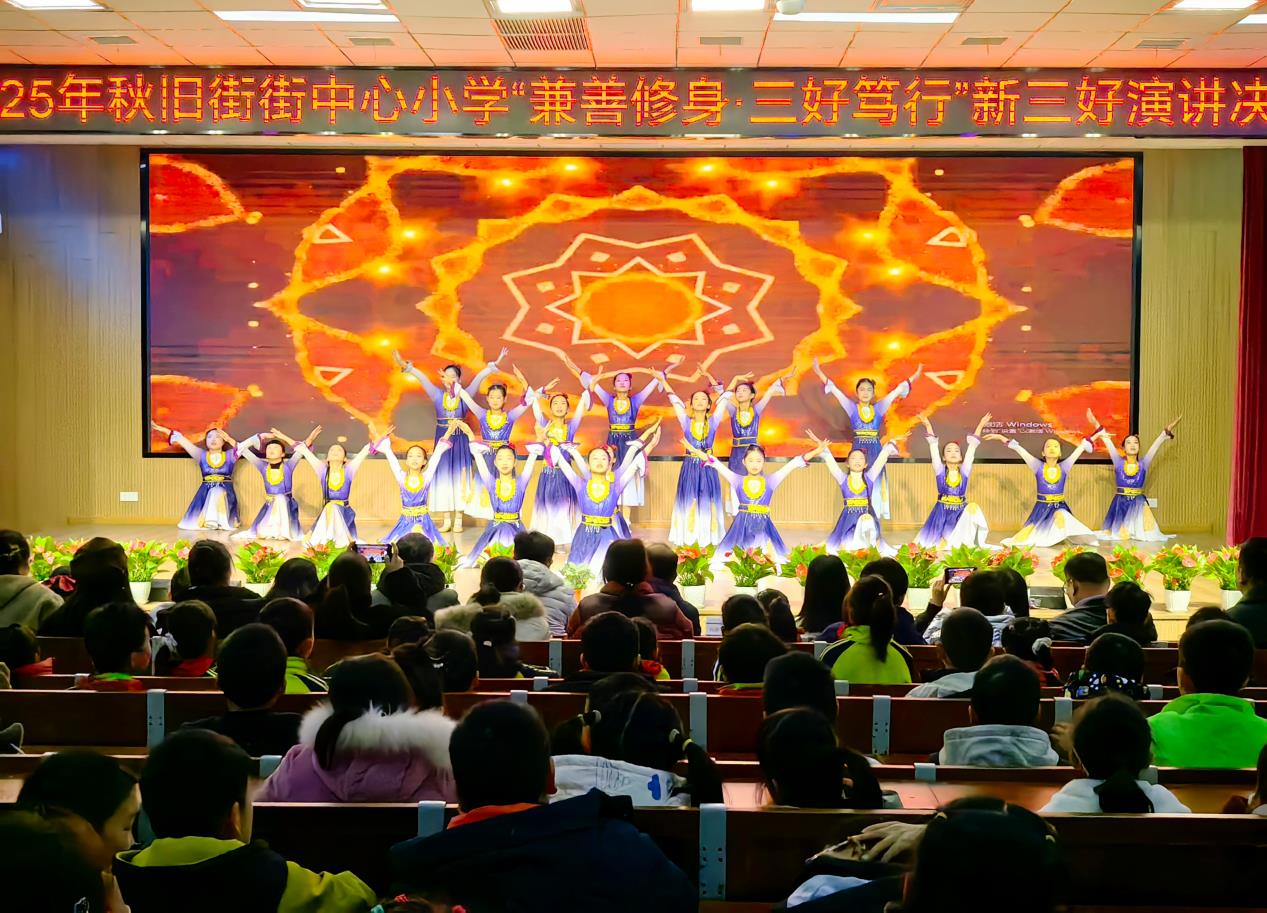 “怎样当一名‘新三好’学生?我认为,在课堂上认真听讲,在家里帮爸爸妈妈做家务,爱护环境、不乱丢乱扔垃圾,还有与同学们去福利院为住在那里的爷爷奶奶表演节目,帮他们打扫卫生,做好这些寻常小事,就是争当‘新三好’的具体表现。”12月25日上午,新洲区旧街街中心小学“兼善修身·三好笃行”新三好演讲决赛正在举行,502班语欣同学激情演讲。教联体的青山区钢都小学及新洲区问津第一小学的领导和学生也参加了活动。