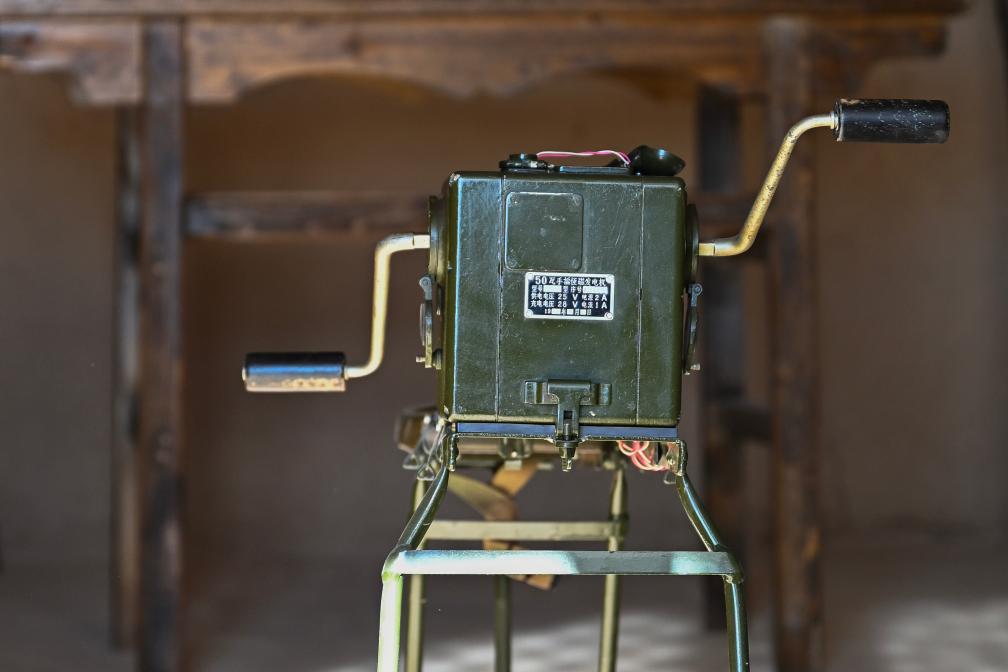 复原的延安气象台值班室内展出的手摇发电机。新华社记者 邹竞一 摄