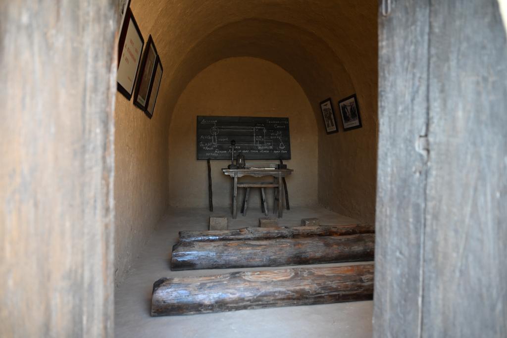 延安清凉山气象训练队旧址复原的学员教室。新华社记者 邹竞一 摄