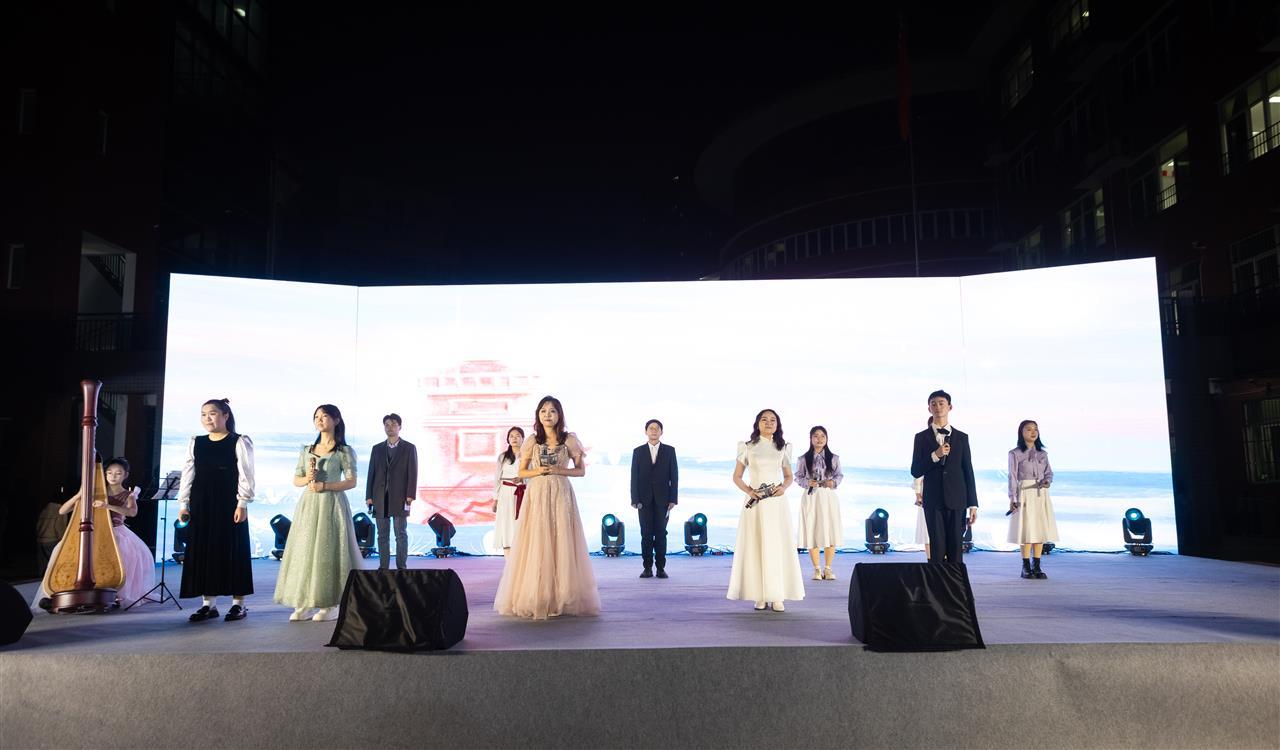 管乐合奏《迎风序曲》《天空机器》,合唱曲《莫尼山》《We Will Rock You》《爱是我的眼睛》,还有《春之约》《战台风》《九州同愿》等丰富多彩的歌舞节目、改编迪士尼的华丽英语音乐剧。12月26日晚,武汉市光谷第二初级中学(下文简称“光谷二初”)举行第七届艺术节展演活动,15个高水平节目轮番登场,震撼台下近3000名师生、家长。