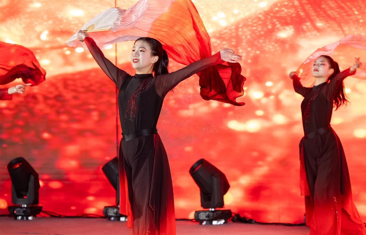许多学生由此得到了飞速成长。716班学生梅琬卿此次参演了《唱支山歌给党听》歌舞,她说,第一次来本部排练,她急得大哭,觉得自己跟不上节奏,平时又没时间练习,怕拖节目后腿,在团队姐姐们的鼓励下,她每天在家跟着她们的视频练,演出当天的彩排,她也抓着808班、815班两位姐姐不放,努力练习。“结果后来不仅我的节目学会了,谢幕的《相亲相爱》我也学会了。”