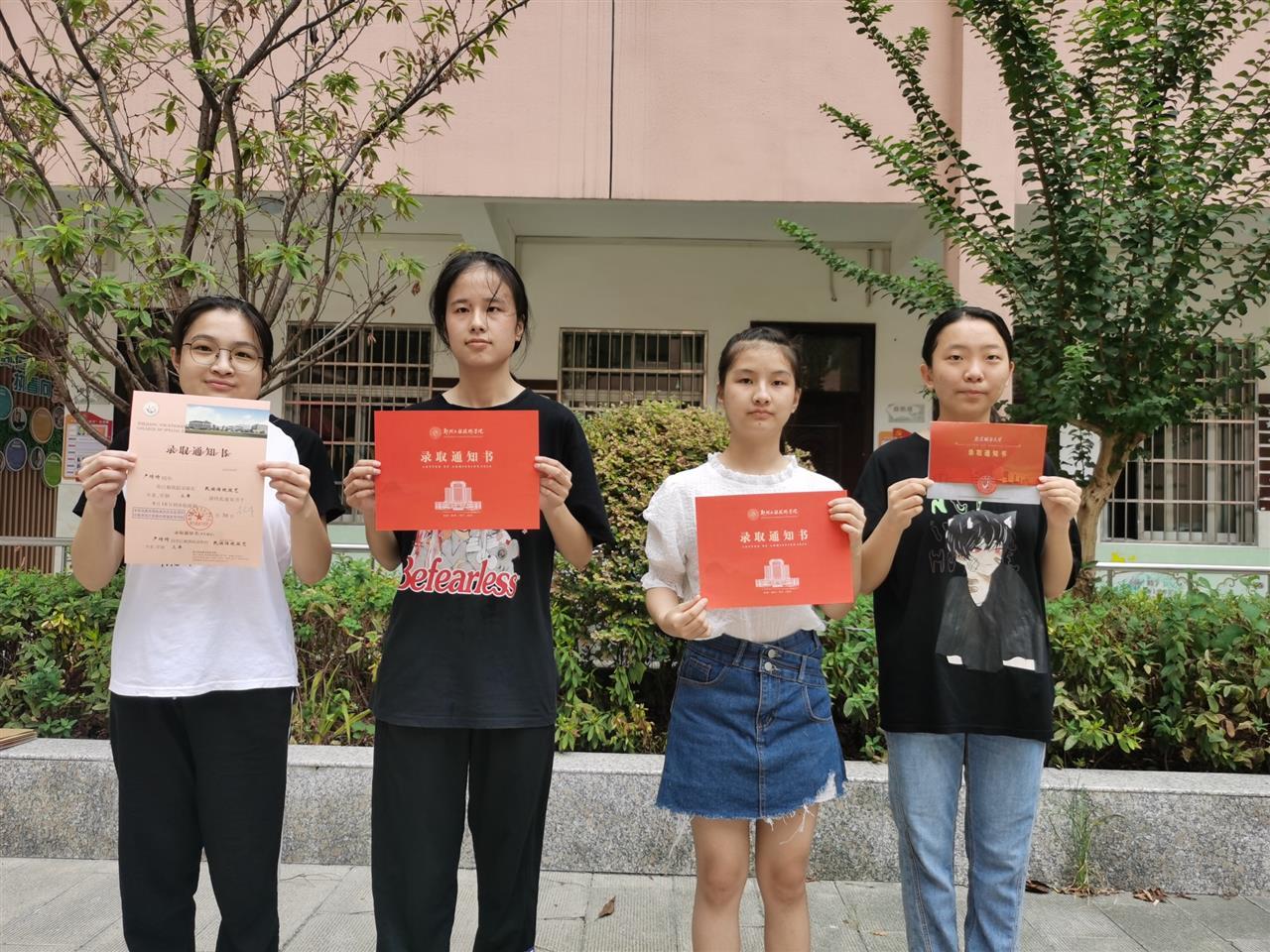 当年班级五名学生全部圆梦大学,四名女同学合影照片